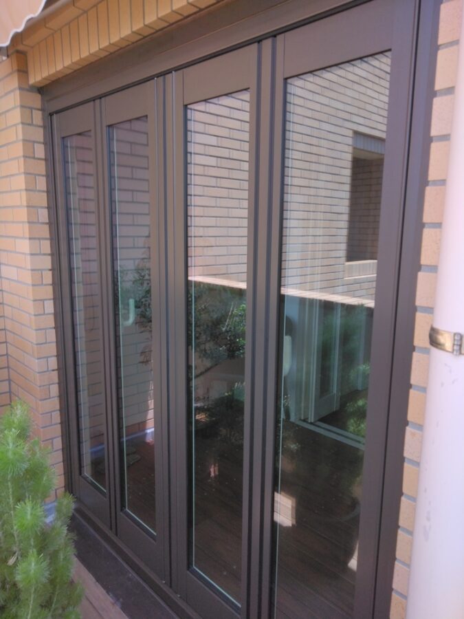 今回はベランダ側の窓に折れ戸式サッシを工事した様子です